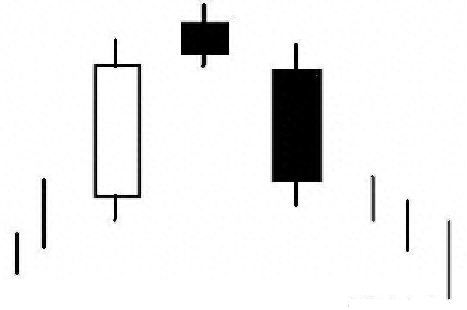 该形态出现前,必须有一段较大的升幅,即该形态必须处在高位。(2)该形态的第一条图线必须是一条较大的阳线。(3)第二条图线应是一条星形小图线,如果同时具备有较长的上下引线则更佳。(4)第三条图线,应是一条大阴线,收盘价应收在第一条大阳线的中心值附近,收得越低越好。