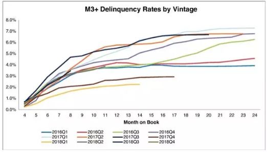 最近三年,玖富平台Vintage口径超过90天的逾期率表现如下: